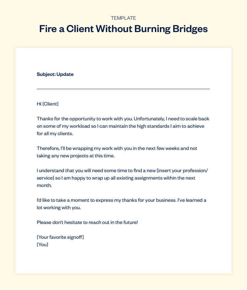 - Giving the client advance notice that you’re ending the relationship so they can plan accordingly.