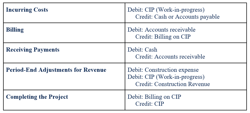 Percentage of Completion Method Journal Entries