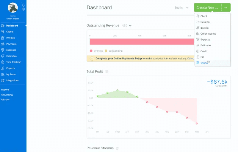 That’s it, you can now track Bills to that Vendor. Here’s what it looks like in FreshBooks:
