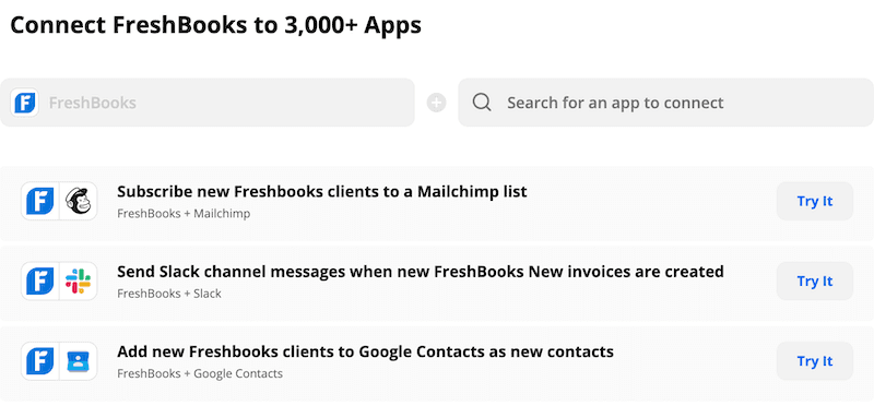 - Connect your Zapier account with FreshBooks and you’re ready to go!
