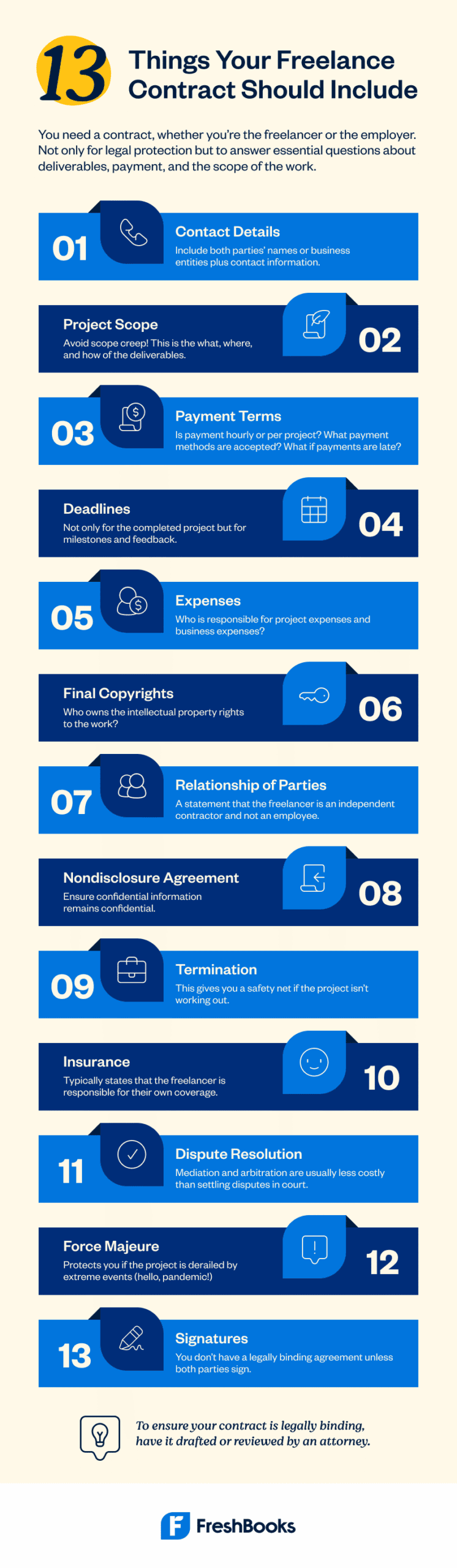 If you want to ensure that you have a legally binding contract, it may be worth the investment to have an attorney draft or review your freelance contract.