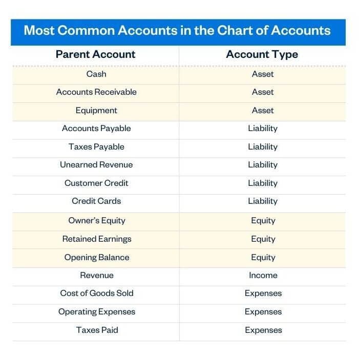 The FreshBooks Chart of Accounts includes some of the most commonly used accounts for small businesses: