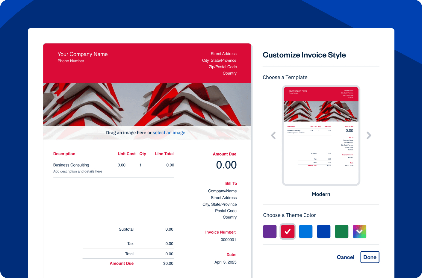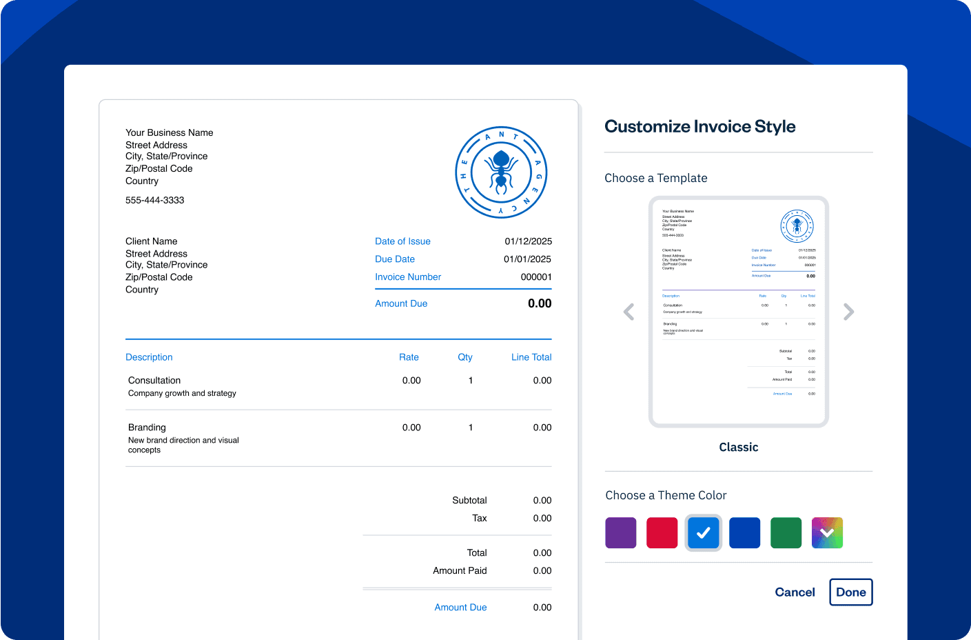 You’re the real deal, be sure you look it. FreshBooks makes creating professional looking invoices for your business ridiculously easy. With our invoice generator, it’s simple to create and customize your invoice, add your logo and personalize your thank you email. Your clients will be wowed.