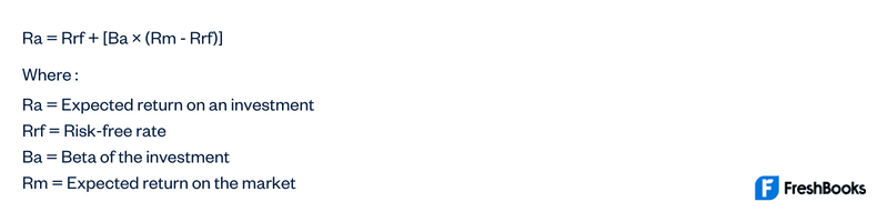 Investments like treasury bonds are risk-free. Beta represents the measure of risk as a company's stock prices regress. Higher volatility usually correlates with higher beta and higher relative risk compared to the market return in general. In this formula, the current average market rate is the market rate of return. A higher cost of equity would usually indicate a higher risk for companies.