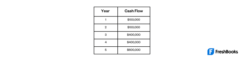 The estimated cash flows per year over the five years are as follows: