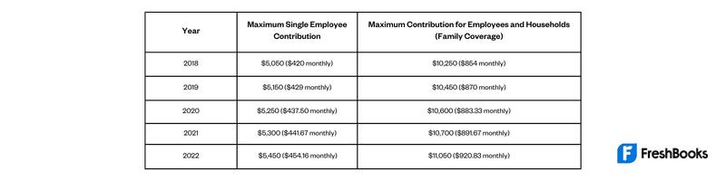 Here is a table of the maximum limits of a QSEHRA throughout the years: