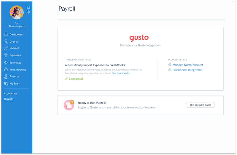 FreshBooks integrates with Gusto to provide your business with complete accounting and payroll software. Say goodbye to manually transferring information between your two systems, and enjoy the ease of integrated software that can directly pull payroll transactions and record them as a business expense. Click here for your free trial and learn how FreshBooks’ payroll software can support your small business.