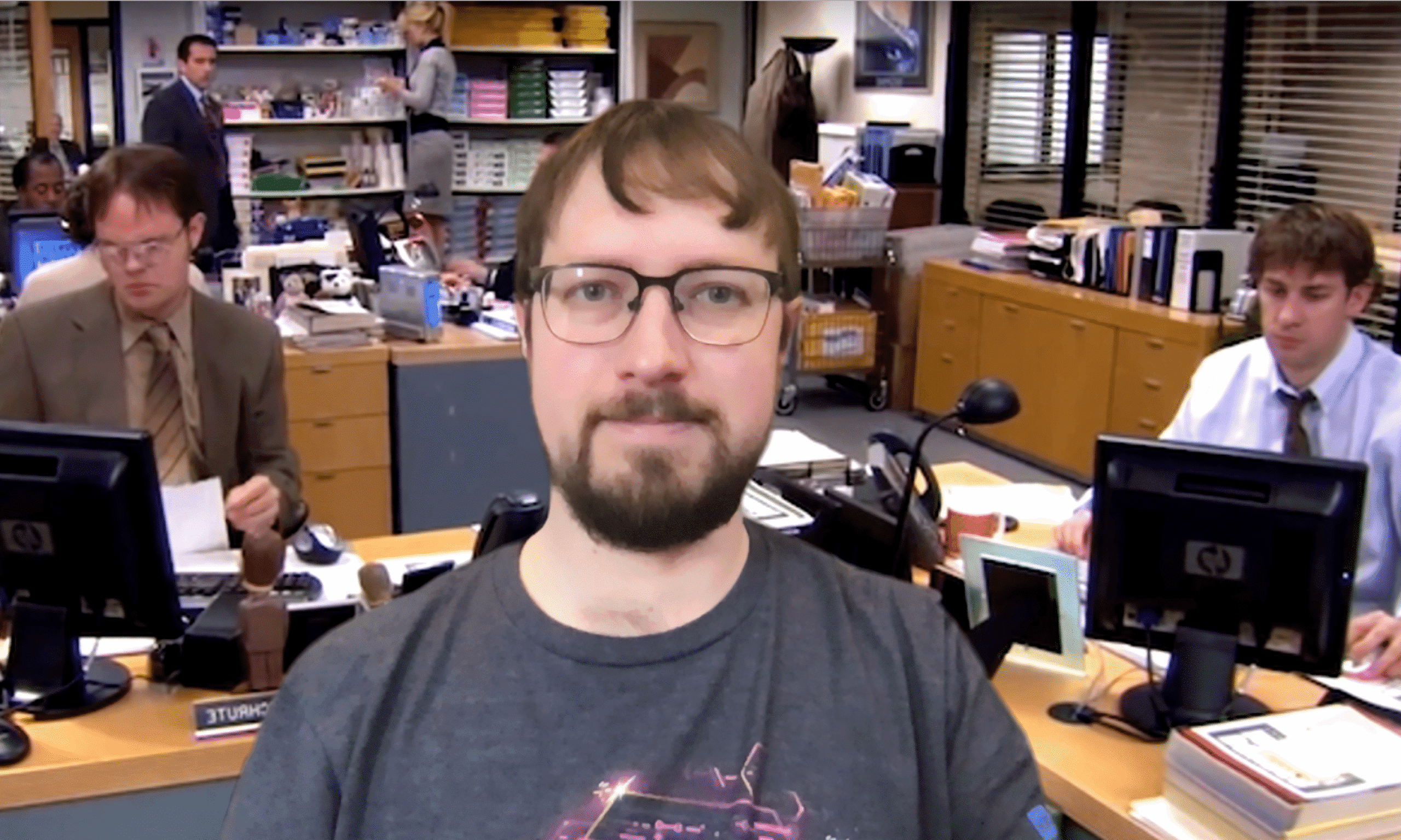 Self-isolation can get lonely. Why not try virtually “popping in” to your co-worker’s space? Just wait for your colleague to leave the room and take a screenshot of their video window. Apply it to your background and sit back and wait for people to notice.