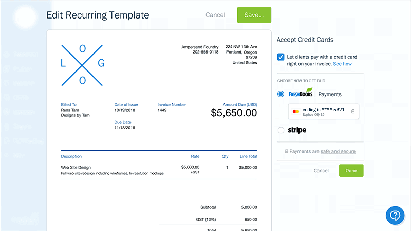 Before this update, it took a workaround to edit those client payment details. But now, you can do it seamlessly from your FreshBooks account. You’ll save tons of time and your client won’t have to lift a finger.