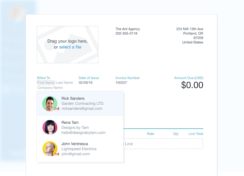 When typing in your client’s name on a FreshBooks invoice, your Google Contacts will populate in the client drop-down list, and when selected the client will be automatically created in FreshBooks. This enables you to invoice up to 3x faster and cut down on manual entry work (P.S. Download the free Google Sheets invoice template or Google invoice templates to make invoices in a matter of minutes).