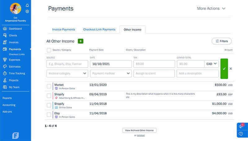 How to Log Other Income in FreshBooks