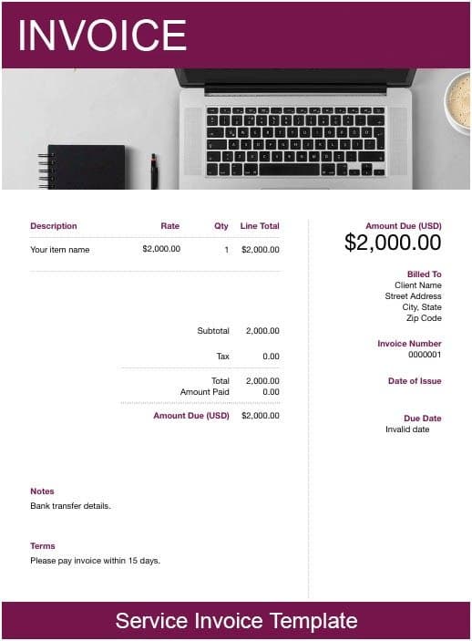 You must know how to fill out an invoice as all service-based businesses should develop and follow an invoice template that works for them. The template should feature the business’s branding, including its logo, common fonts, and color palettes. The service invoice template should be simple and professional and should showcase the most important information on the invoice: your business information, the amount owing, and the invoice due date. You can create your own simple invoice template design, or you can download a free service invoice template to use.