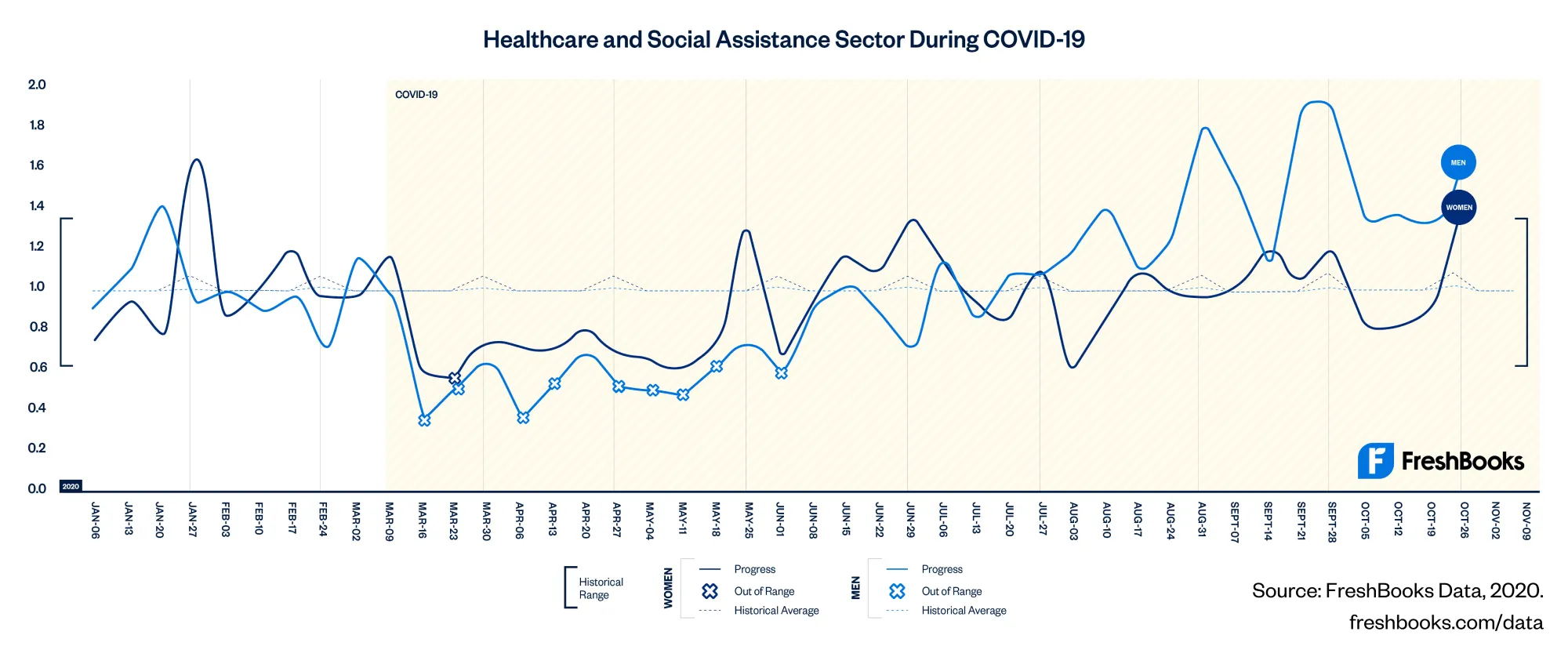 ✅ Industries that are normally women-dominant (e.g. healthcare and social assistance) are now seeing male-owned businesses recovering significantly faster.
