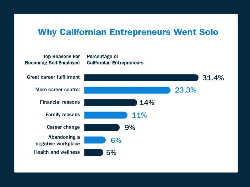 Despite all of the challenges of self-employment, the majority of Californian entrepreneurs struck out on their own to pursue greater fulfillment in their careers.